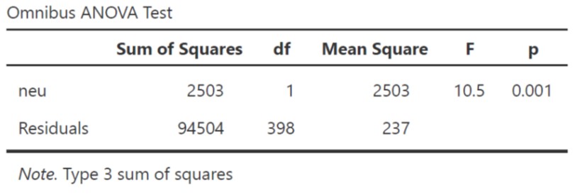 - Coba bandingkan sum of squares antara neu dengan Residuals (tabel ANOVA).