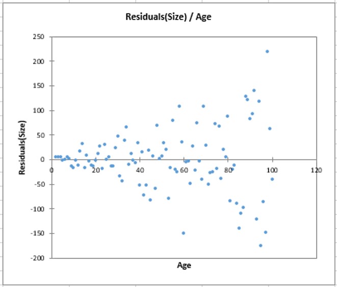 - Kalau residual menunjukkan karakteristik heterokedastik, maka distribusi residual akan terlihat seperti kerucut.