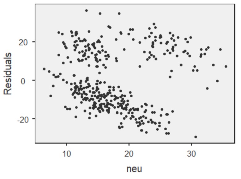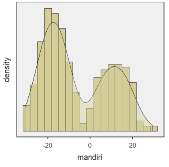 Setelah dilakukan diagnostik, varians yang tidak dapat dijelaskan oleh model berdistribusi normal dan ketika dikorelasikan dengan nilai prediktif tingkat kemandirian siswa dan kecenderungan neuroticism ibu, maka menghasilkan varians yang homogen (homoskedastik).