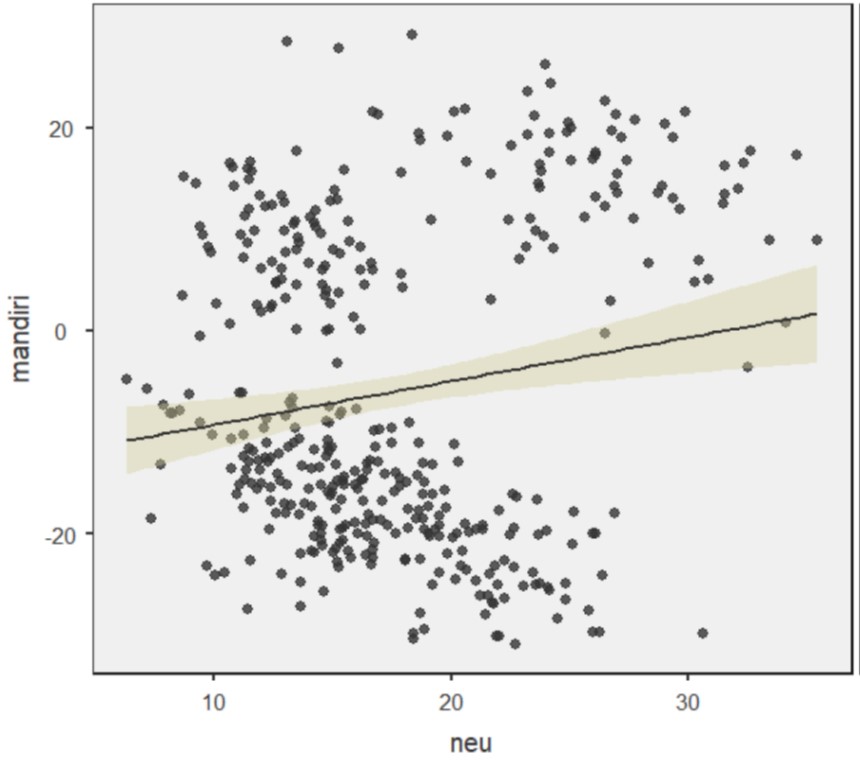 - Neuroticism (neu) dengan tingkat kemandirian (mandiri)
