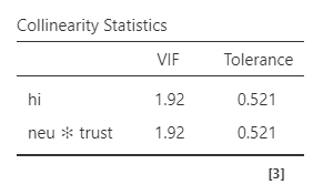 - Model 2 prediktornya hi dan interaksi antara neu dengan trust