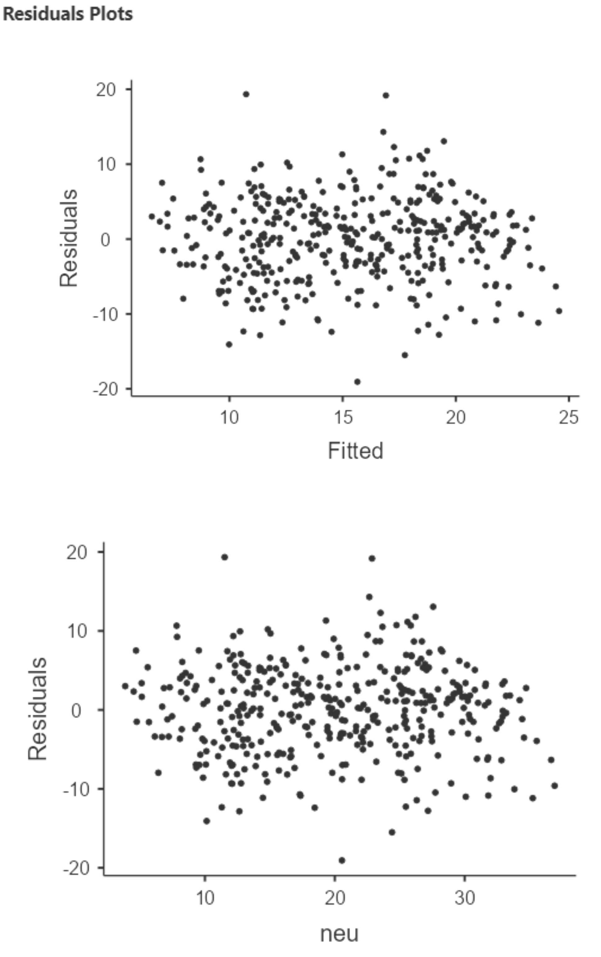 Setelah dilakukan diagnostik, varians yang tidak dapat dijelaskan oleh model berdistribusi normal dan ketika dikorelasikan dengan nilai prediktif tingkat kemandirian siswa dan kecenderungan neuroticism ibu, maka menghasilkan varians yang homogen (homoskedastik).