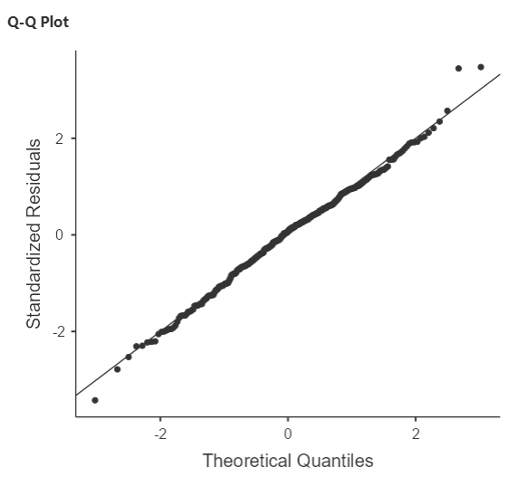 - Apabila residual tersebar secara acak atau makin menjauhi garis diagonal, berarti tidak berdistribusi normal dan ini melanggar asumsi ordinary least square.