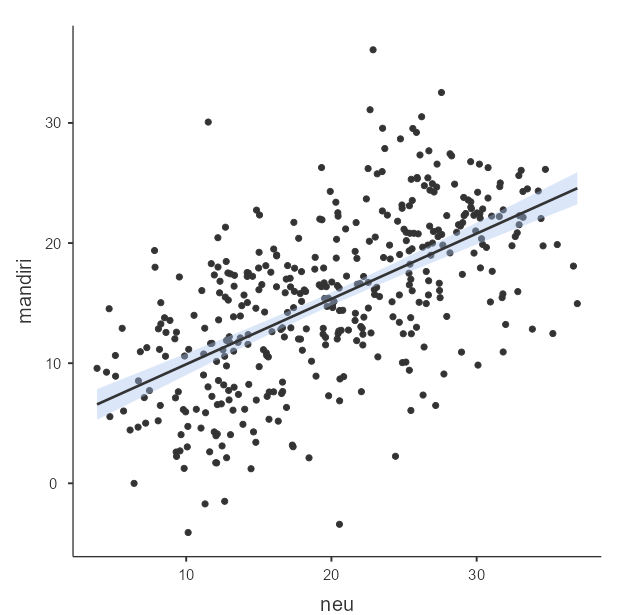 - Neuroticism (neu) dengan tingkat kemandirian (mandiri)