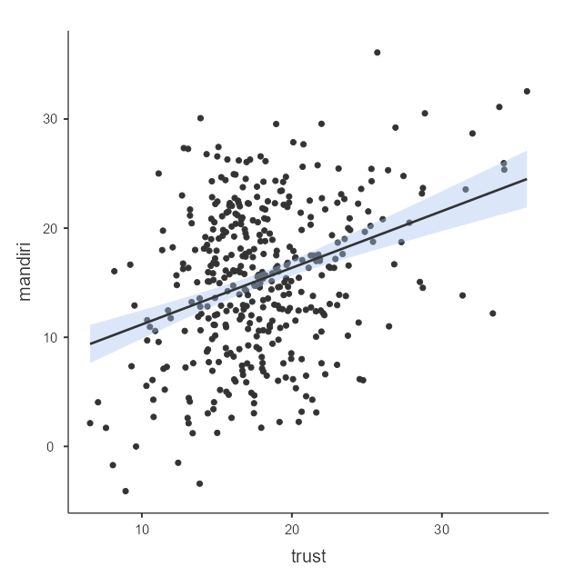 - Masukkan neu (scatterplot 1) dan trust (scatterplot 2) pada kolom X-axis
