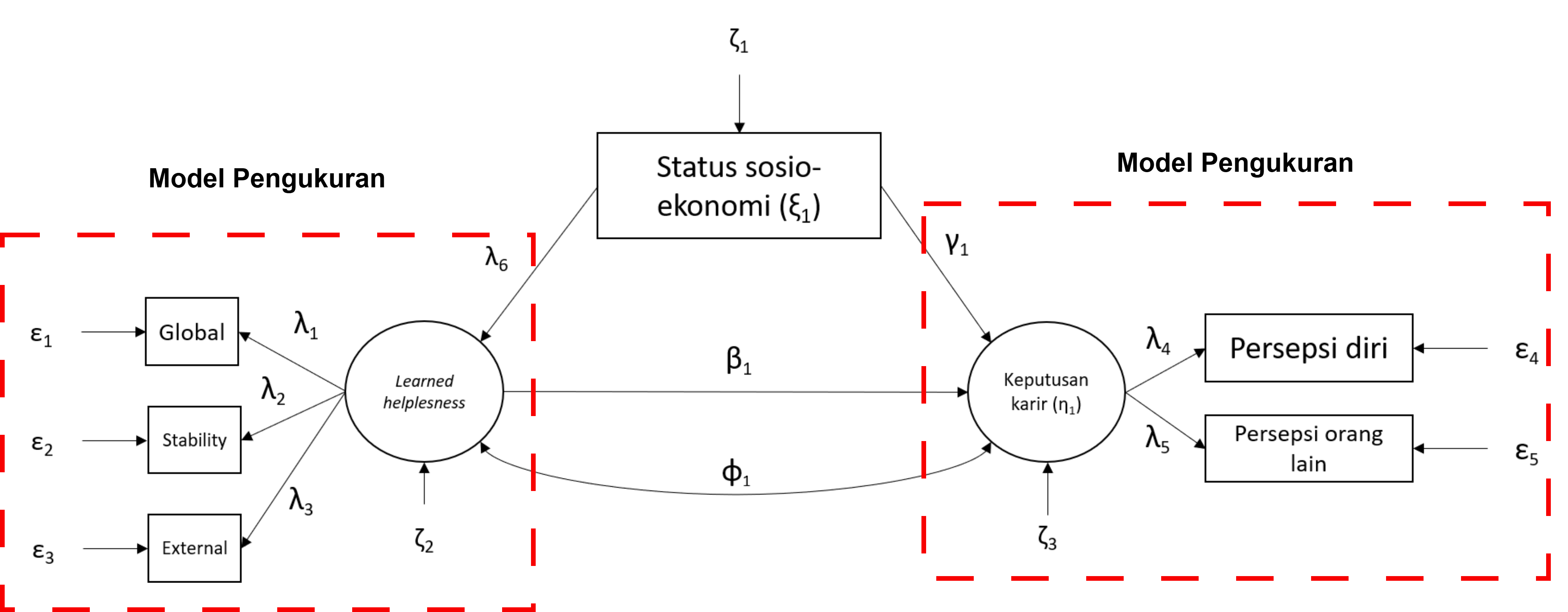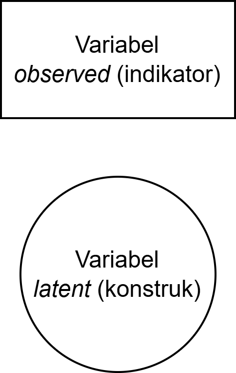 Semua konstruk ini disebut variabel laten (latent variable): variabel yang tidak dapat diamati secara langsung, tetapi dapat diinferensi dari variabel lain yang bisa diukur (observed variables).
